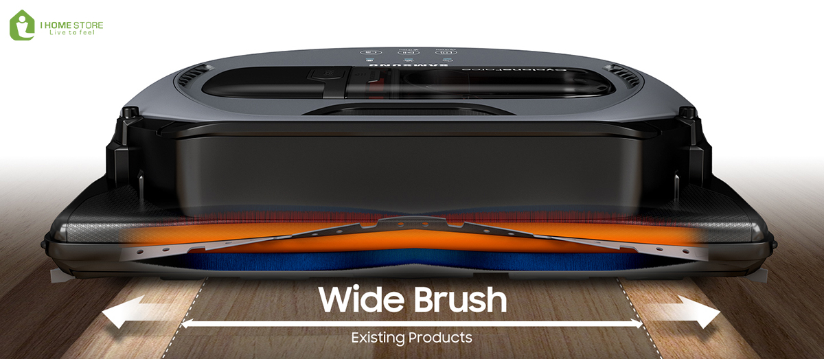 Robot hút bụi Samsung POWERbot có chổi giữa dài, có thể làm sạch các khu vực lớn hơn nhanh hơn và hiệu quả hơn. Chổi giữa có chiều rộng 290mm, lớn hơn 42% so với bàn chải 204mm thông thường, vì vậy nó tăng tốc quá trình làm sạch bằng cách bao phủ một khu vực lớn hơn với ít chuyển động hơn trong thời gian ít hơn.
